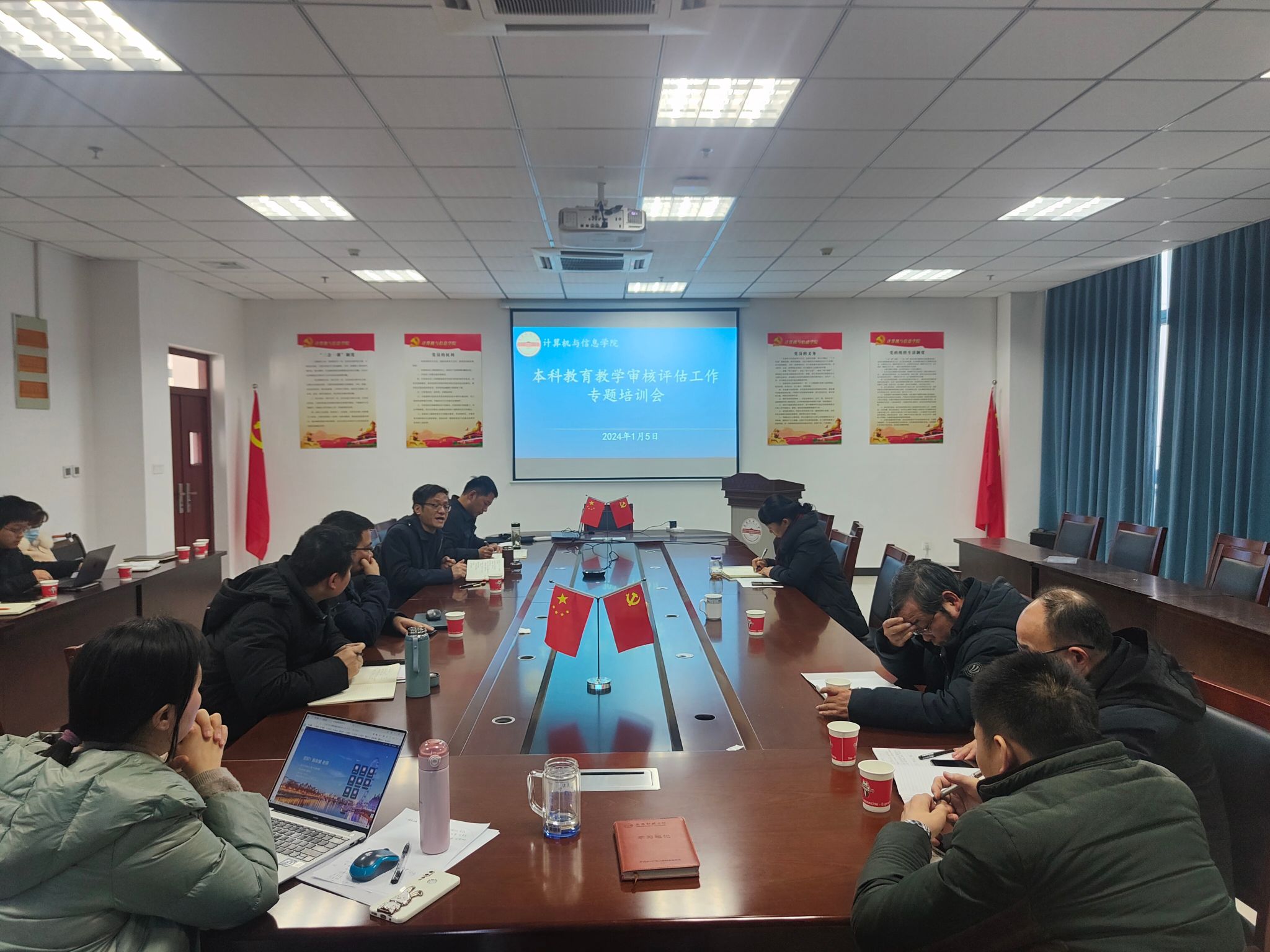 1月5日,计算机与信息学院在L318召开本科教育教学审核评估专题培训会。会议由院长刘奎主持,邀请滁州学院计算机与信息工程学院院长赵生慧、副院长杨斌线上培训指导,学院党政领导、党支部书记、教研室主任、实验室主任及办公室成员参会。