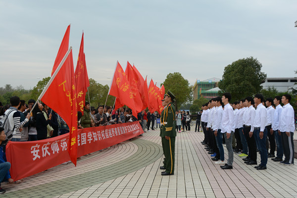下午3点,在升旗仪式和国旗队交接仪式结束之后,国学知识竞赛活动正式开始。17支队伍分为3组,依次跑完全程。“整个活动的赛道是围绕学校一周,一共分为10个赛点。”活动的负责人刘永生说道,“参赛人员需要2人一个小组,一个负责跑步,另一个负责答题。各学院代表队需要环校进行答题、接力赛跑。”在活动中,每个赛点都要进行知识问答,并且途中设置游戏障碍区,给比赛增加了趣味性。