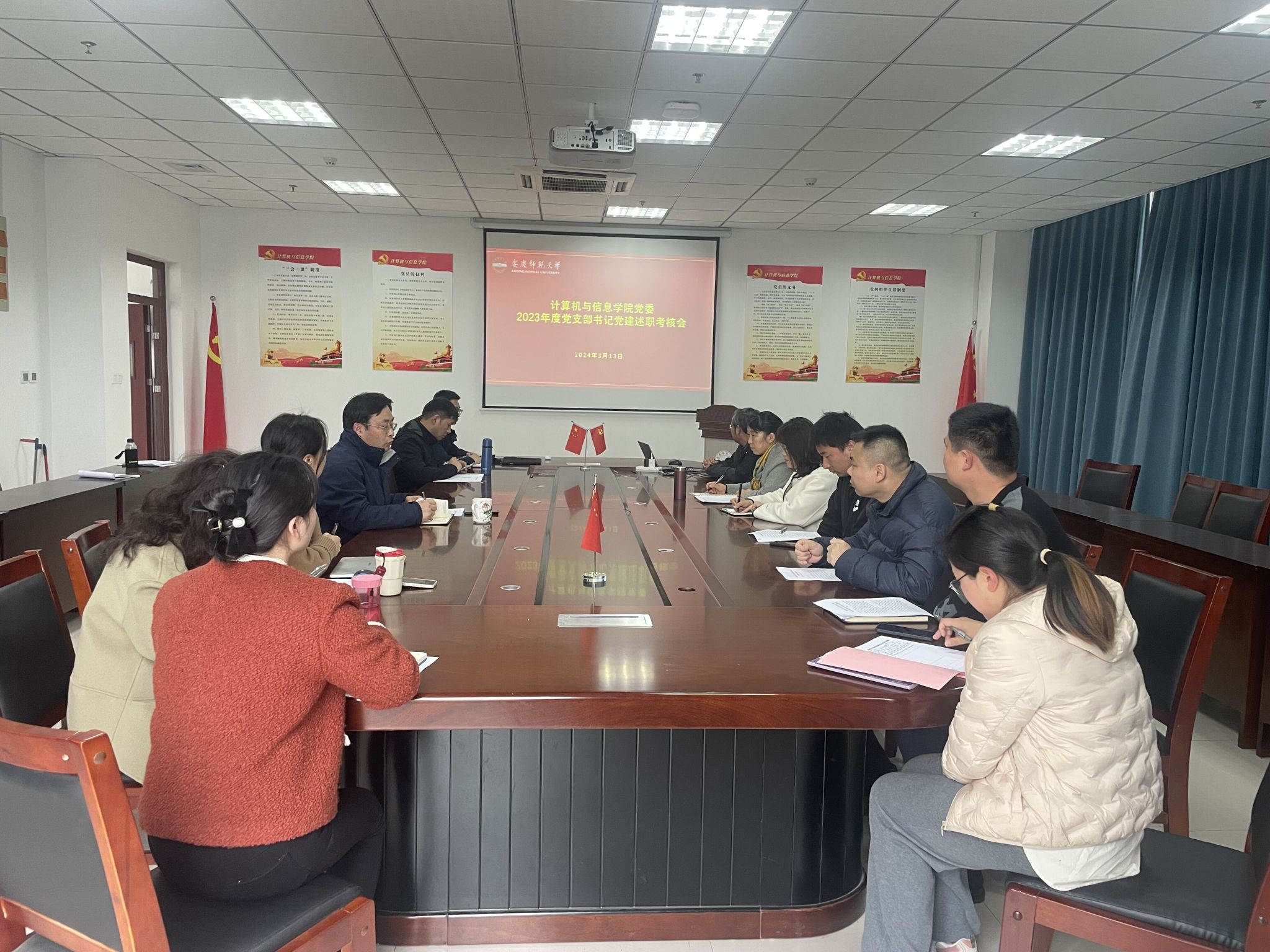 3月13日,计算机与信息学院党委在学院楼318会议室召开2023年度党支部书记抓党建述职考核会。学院领导班子成员、党委委员、纪委委员、师生党支部书记等参加会议。院党委副书记刘燕杰主持会议。