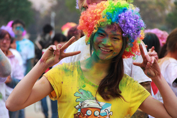 当天下午,新华广场前站满了人,连住在附近的小妹妹也过来凑热闹,并夹在人群里一起撒彩粉,当别人告诉她那是无毒无害的食用玉米粉时,小家伙瞪大了眼睛说:“真好玩!”还没正式开始跑,现场气氛就已经达到了一个小高潮,参赛选手带着夸张怪异的彩发,穿着白t恤互相抛洒彩粉。五彩粉末飞扬,人群彻底沸腾,一场嬉闹下来,选手们一个个都成为“彩人”。搞笑的打扮,绚烂的色彩,展现出生命中最张扬的活力。