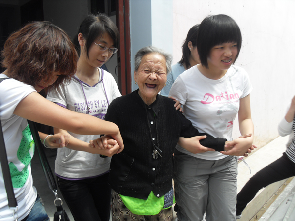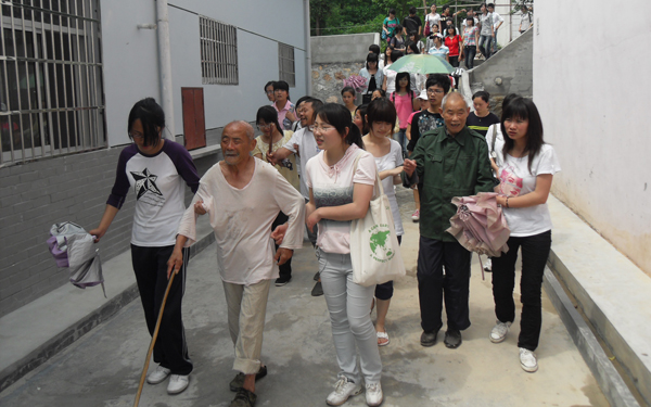 表演结束后,同学们又来到老人们的房间,和老人们聊起了家常,一起谈论上海世博会,房间中不时地传出阵阵地欢笑声,整个敬老院都在温馨的气氛中笼罩着。最后,大家与老人们合影留念,依依惜别中,活动圆满结束。