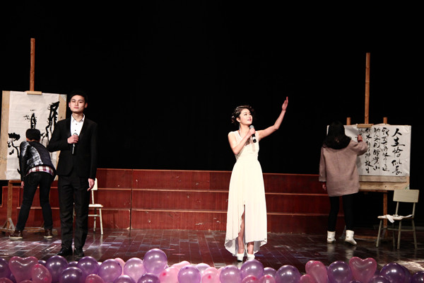 “吃静物考不上大学!”“撕了重画!”这些话想必学美术的同学都曾经听说过。美术学院话剧团结合院系学生实际,自创话剧《我的大学梦(三)》,讲述了一群学美术的学生奋斗却可能被误解的高三生活,欢笑中夹杂着辛酸,戳中了台下美院人的泪点。话剧演员范秀敏入戏后不禁落泪,将现场气氛推向高潮。微信互动墙上满是大家的感慨:“专业生也很努力好吗!”“看得想起高中生活,其实美术生不容易。”整场话剧深入人心,许多美院观众都感同身受。“我想起我的艺考,真的是十分辛苦!”演出结束后,范秀敏擦着未干的眼泪说道,“这个话剧融入了我们以前在画室的真实生活,很有感触,演出了心声。”
