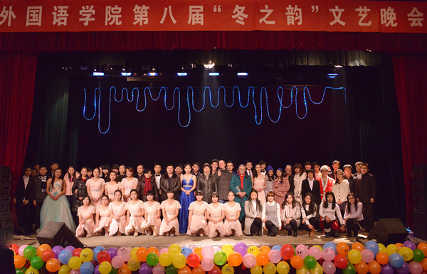 近日,外国语学院第八届“冬之韵”文艺晚会在龙山校区音乐厅隆重举行。外国语学院党政班子以及全体辅导员老师、外籍教师、部分教师代表出席了晚会,学院2013、2014级学生以及各兄弟学院学生代表共五百余人观看了晚会。