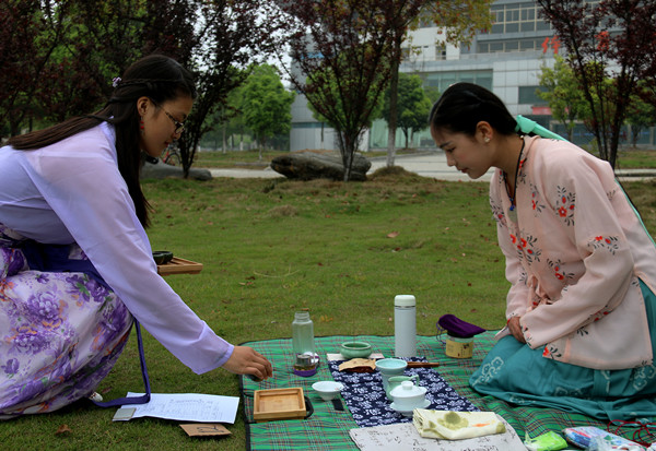 “上巳节与茶会一样,都是我国流传已久的传统文化。近些年来人们的生活节奏不断加快,人心浮躁,这样的传统也渐渐的被忽视了。我们希望以这样的方式,让大家的心静下来,同样也号召人们回归传统。”本次上巳节活动的主要负责人、安师院汉服社社长苏丹说道。小小的茶会,看似复杂的程序,实则寄托着对生活、对人生的思考。“茶会现场禁言语,表示追求内心的平静;茶会时大家都会围坐成一个圈,表示无尊卑之分;人人泡的茶都不同,茶叶不分好坏,表示无好恶之心。”