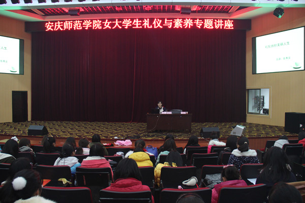 “ 耳朵里塞着小喇叭,躲在被窝里看漫画,虽然我还在象牙塔,我多么想一夜长大……” 12月3号下午,《酸酸甜甜就是我》的歌声回荡在图书馆东报告厅内,这里正在进行的是由安庆师范学院女生工作坊主办、校学生会女生部协办的女大学生礼仪与素质专题讲座,主讲人是文学院副教授岳秀文老师。