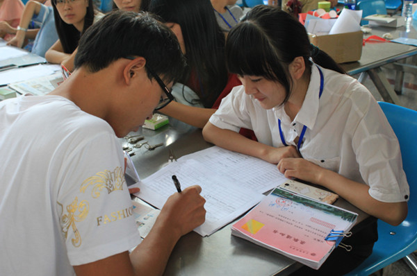 迎新工作从9月9号早上5:30开始,学生会成员就已全体就位,在食堂布置好新生报到点。学生会的志愿者安排在校门口迎候新生,主动为新生提行李,引导新生去报道点处办理入学手续、领取军训服装。10号是迎新的高峰期,迎新工作根据迎新方案有条不紊地进行,工作人员及志愿者热情高涨,校园里随处可见志愿者和新生亲切的交谈。10号傍晚,新生已全部报到,化学化工学院迎新工作圆满结束。