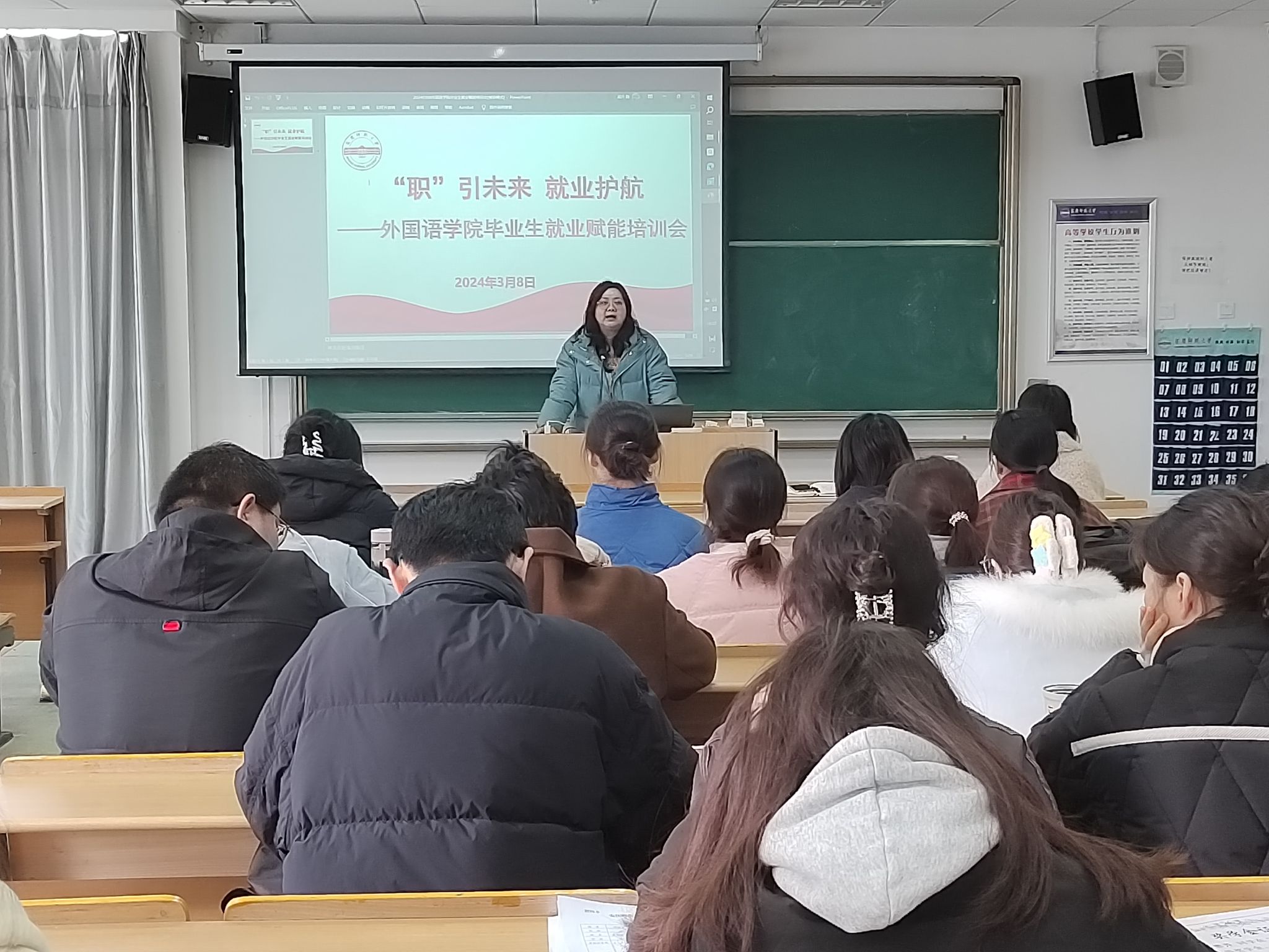 近日,外国语学院在E320举办毕业生就业赋能培训会,学院党委副书记何媛君、2023届和2024届毕业班辅导员代表及全体毕业生参加了本次培训会。