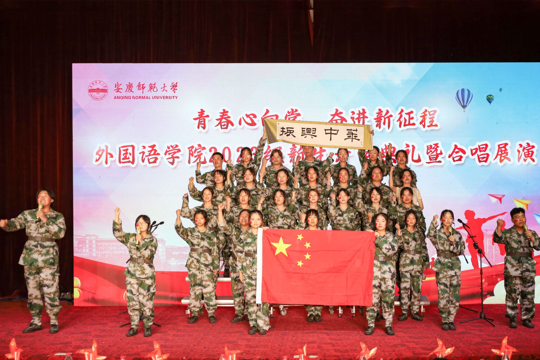 “逐梦向阳飞,青春当有为,我坚信我们都能成为笃行不怠、自强不息的安庆师大人!”老生代表英语(师范)专业2020级(5)班的彭菁豪称大学的三年为“滚烫青春中最沸腾的一页”。他表示,新生应积极参与各式各样的文化活动、学科竞赛和志愿服务活动,用行动践行“请党放心,强国有我”的铮铮誓言。