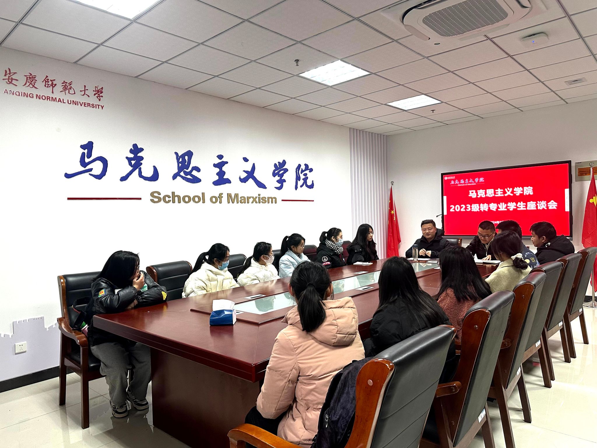 2月28日,马克思主义学院于Q楼213教室召开2023级转专业学生座谈会,学院团委负责人、全体转专业新生参加,学院党委副书记邹斌出席座谈会。