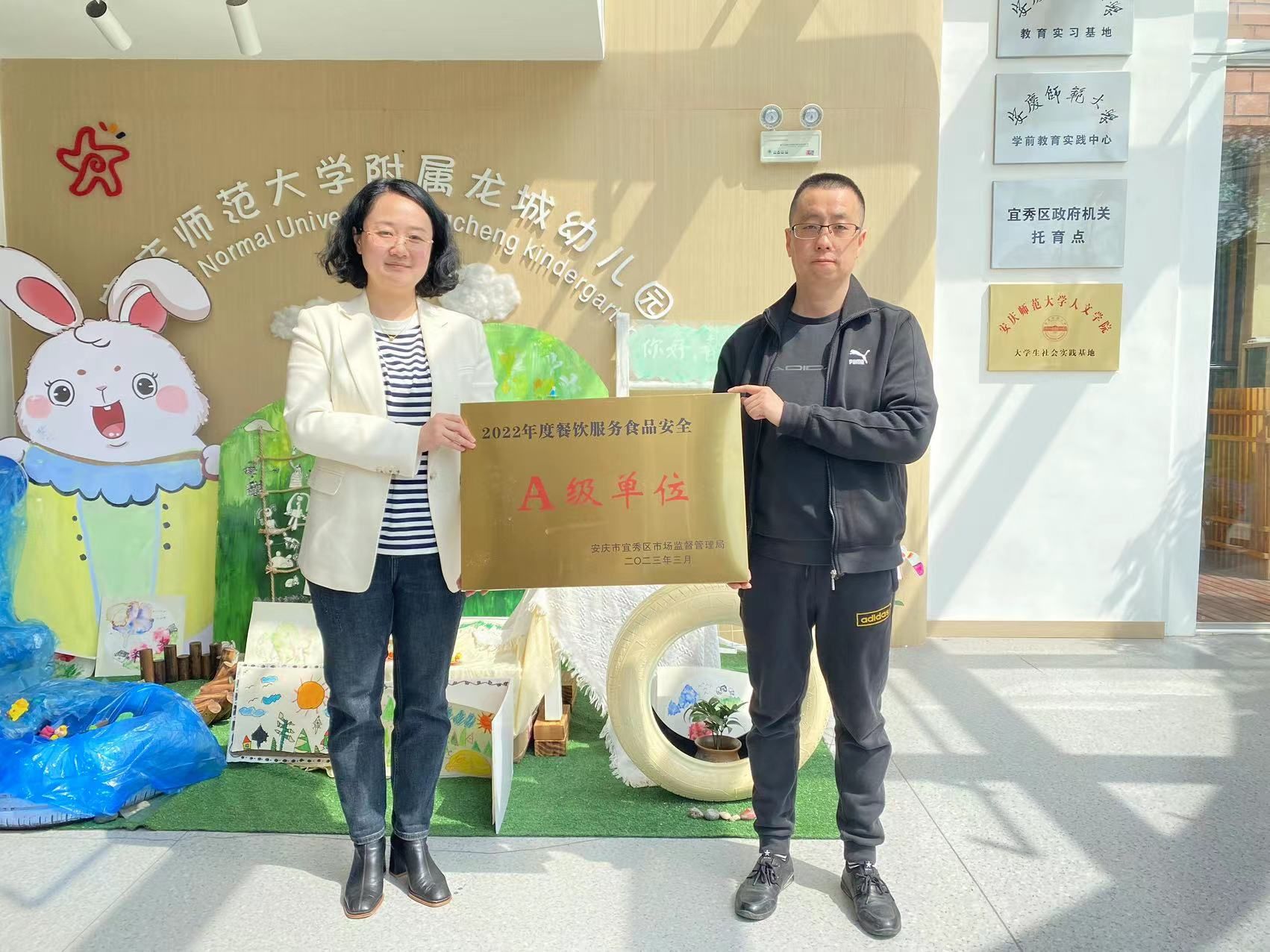 4月10日,附属龙城幼儿园正式被评定为安庆市宜秀区“2022年度餐饮服务食品安全A级单位”。