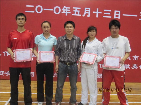 5月16日下午,在体育学院孟海江老师的带领下,体育学院学生参加了安庆市第二届“英德利杯”羽毛球赛。最终经过四天的激烈角逐,该院郜传奇同学荣获本次比赛男子单打第一名,夏可佳同学荣获男子单打第四名,阚永强、殷飙同学荣获男子双打第五名;另外,许皖利、丁玲玲同学分别获得女子单打第三名和第四名。