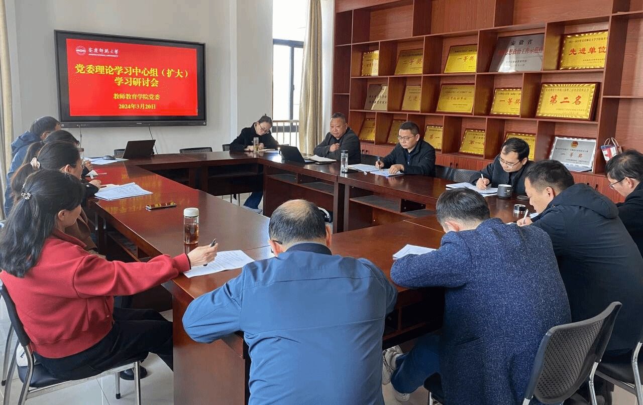 3月20日,教师教育学院召开党委理论学习中心组(扩大)学习研讨会。会议主题为“深入学习全国两会精神,推动学院高质量发展”。学院党委书记何孔蛟主持学习会。学院党委理论学习中心组成员、各党支部书记、教研室主任参加会议。