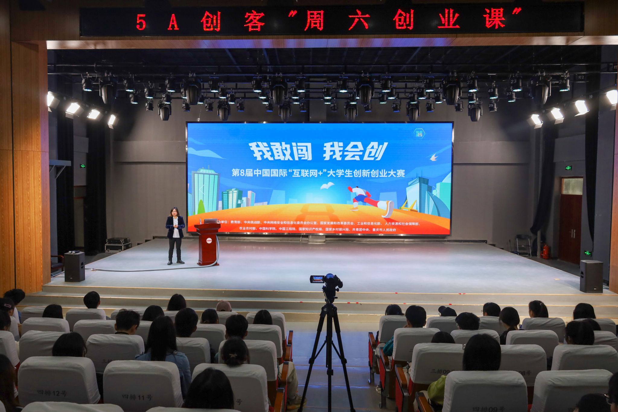 近期,5A创客教育指导工作室“周六创业课”第一课在传媒学院演播厅正式开讲。学校创业导师、教育部“互联网+”大赛评审专家徐颖副教授受邀为同学们作了“互联网+”大学生创新创业赛事主题报告。报告吸引近150名学生参加。