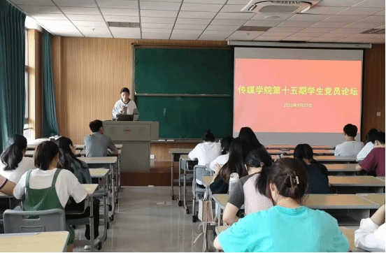 9月27日,传媒学院在K505举办以“举国同庆,情满月圆,弘扬传统文化,礼颂美好祖国”为主题的第15期学生党员论坛。学院全体学生党员参加论坛。8名学生党员代表进行交流发言。