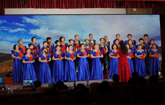 伴随着荧幕上逐渐出现祖国各地的大好河山,30余名老人盛装登场,蓝色礼裙搭配黑色西装,尽显庄严肃穆。舞台上,老人们高高挥舞着五星红旗,齐声合唱《红旗颂》。明快雄壮的歌曲经过演唱者们饱含深情的演绎,将一代人对党、对国家的深切热爱娓娓道出,感染着现场的每一位观众。