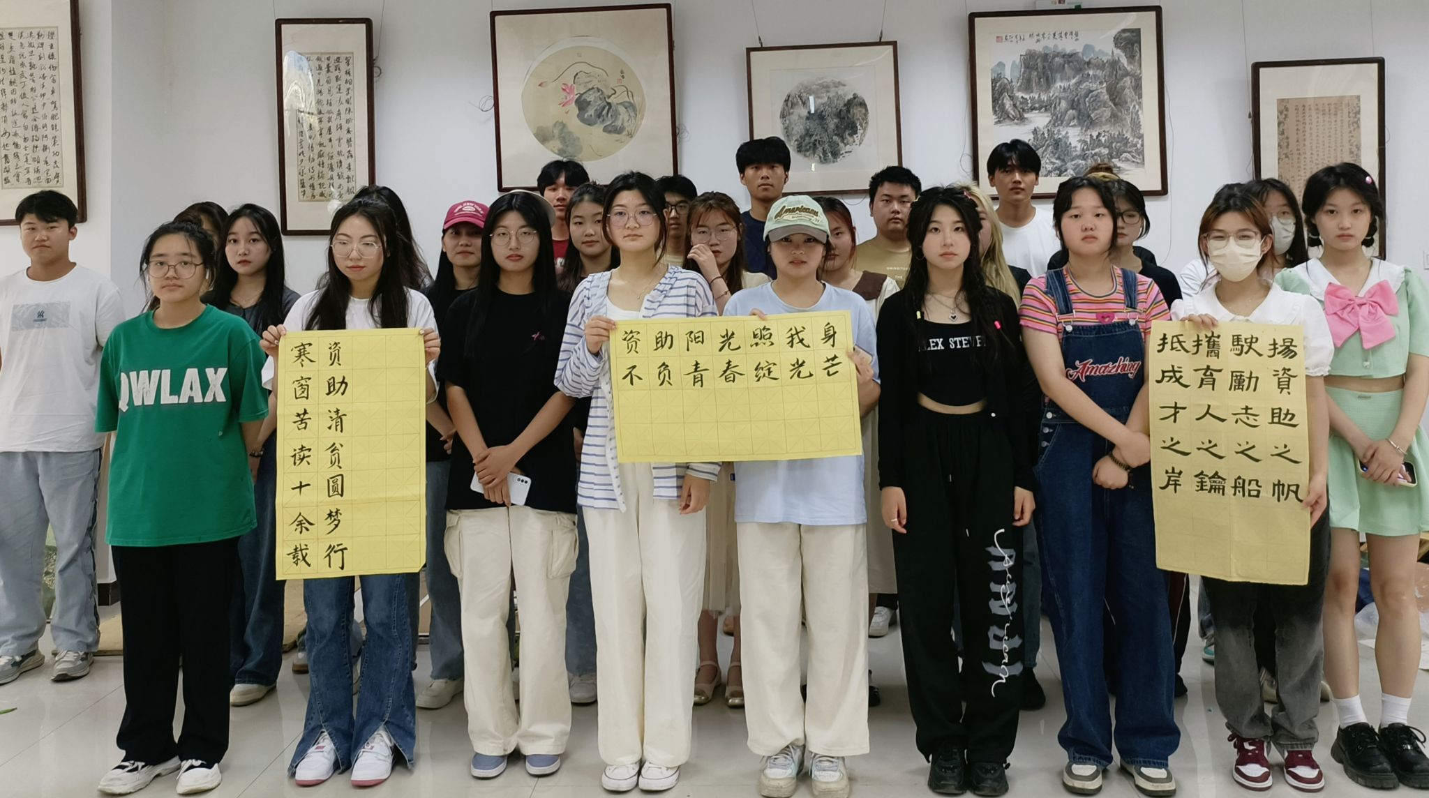 蘸取笔墨、手腕悬空、执笔写出资助恩……6月10日,美术学院于学院展厅开展“青春筑梦”资助育人项目系列活动——“翰墨飘香”,200余名学生展纸挥毫,用毛笔写下励志报国的感恩话语。