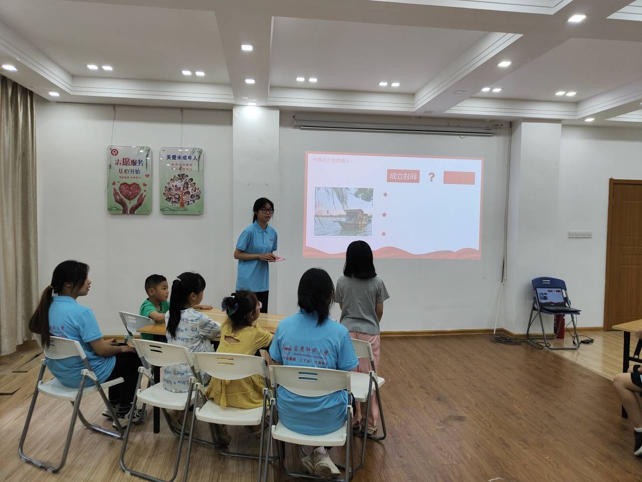 “童行携力 筑梦未来”社会实践团队将“思政课”纳入主题内容中,通过读经典著作、诵英雄事迹、“红领巾”讲党史等特色活动开展“青春思政课”,在社会课堂中受教育、长才干、作贡献,引领小朋友们从小树立远大理想抱负。