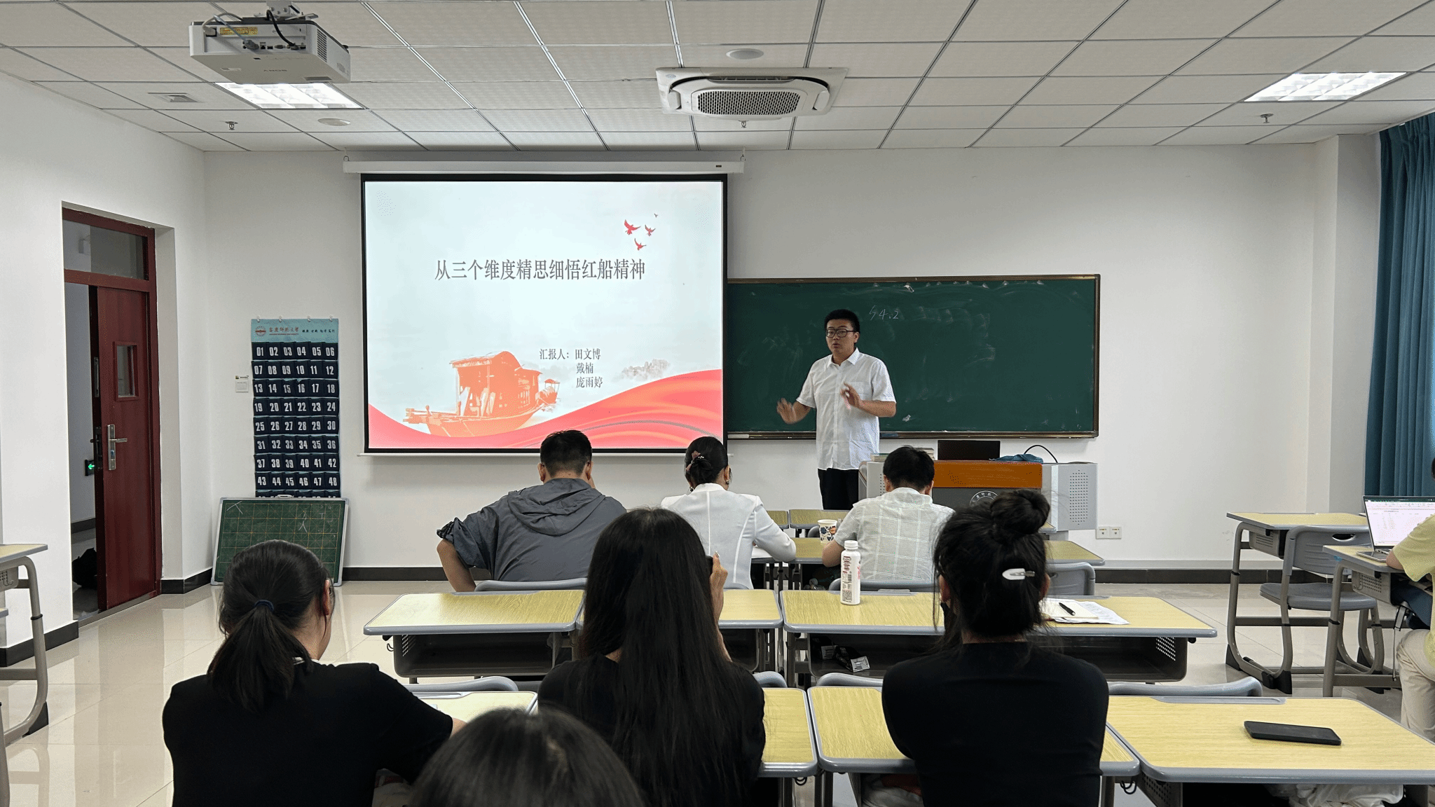 比赛过程中,各团队参赛形式多样,他们或精选素材,突出重点、旁征博引,层层渲染;或别出心裁,以视频形式增强吸引力;或引用生动活泼、贴近生活的案例给大家带来精彩纷呈又接地气的思政课。思想政治教育专业2022级(2)班的田文博以铿锵之言带领大家体悟红船精神,台下掌声雷动。现场评委从教学准备、讲授内容、教学设计、仪容仪表、表达技巧、课堂效果这六个方面进行评审打分。