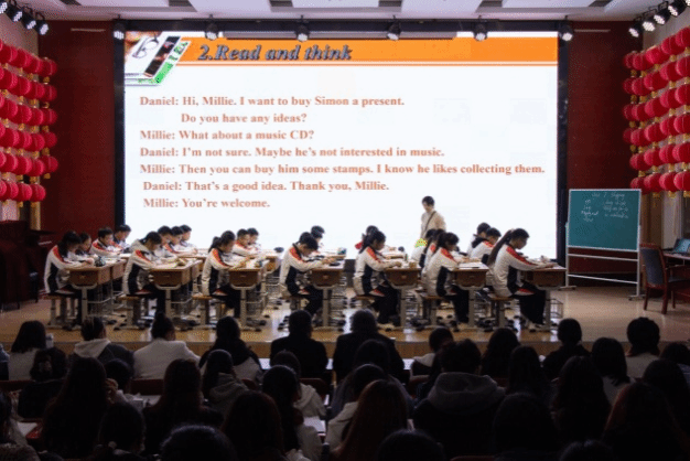 安庆市外国语学校初二年级教师汪妍昊用圣诞歌曲自然引出单元课题“Shopping”,并通过独出心裁的教学设计和丰富多彩的教学手段开展师生互动与生生互动,充分调动学生主观能动性,为师生带来了一堂精彩的英语优质课。高二年级教师王庆安通过“教”“学”“评”一体化设计,教中有学,学中有评,以评促学促教,围绕单元课题“Success”引导学生进行思维拓展;他的全英文教学,发音准确,表达得体,为学生树立了良好的榜样。
