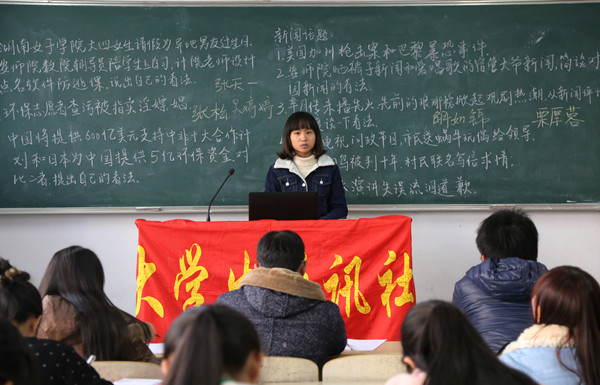“美国加州枪击案和巴黎暴恐事件”“大学生掏鸟被判十年,村民联民写信求情”……国际要闻、时事热点、校园新闻,一个个新闻事件引发选手们的深度思考。