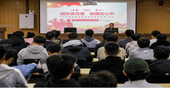 11月17日,学校邀请大观区人武部聂竹青上校作“国防责任重 祖国在心中”国防教育报告,200余名师生代表现场聆听报告。