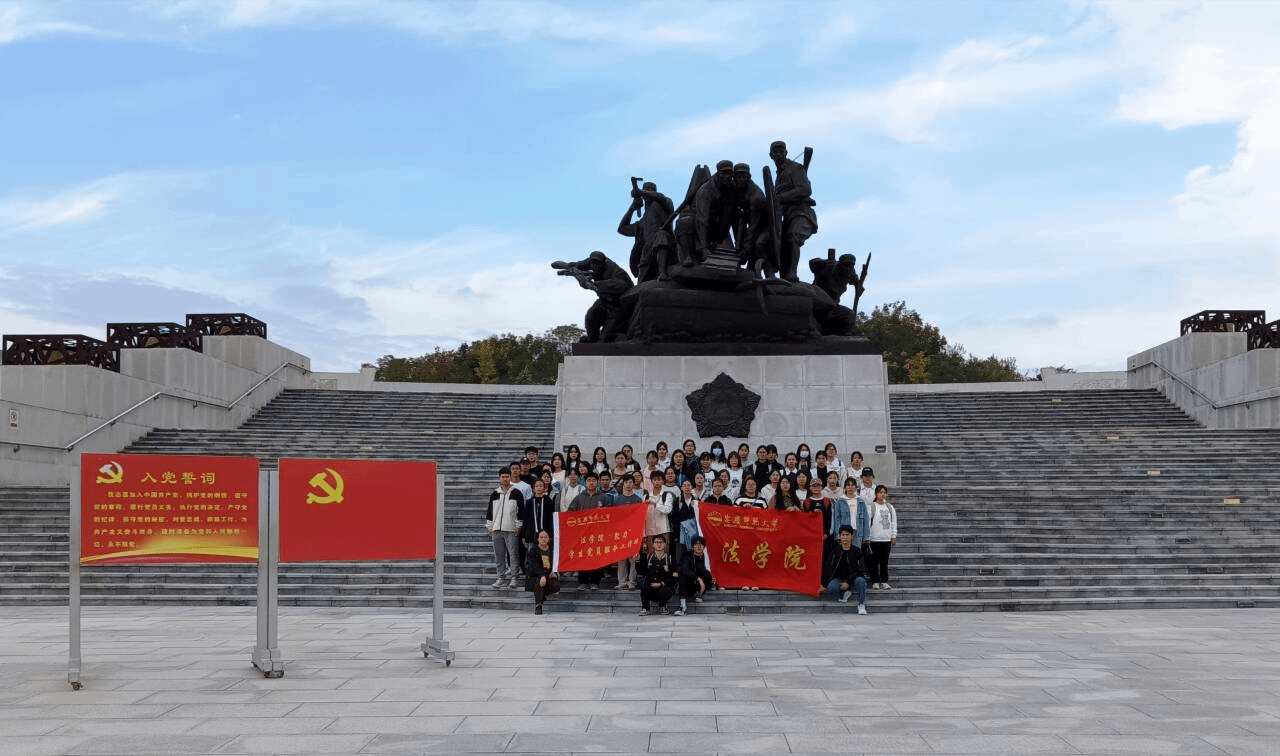 近日,法学院“聚力”学生党员服务工作站组织70余名2023级新生赴安庆市烈士陵园,开展入党启蒙教育活动。