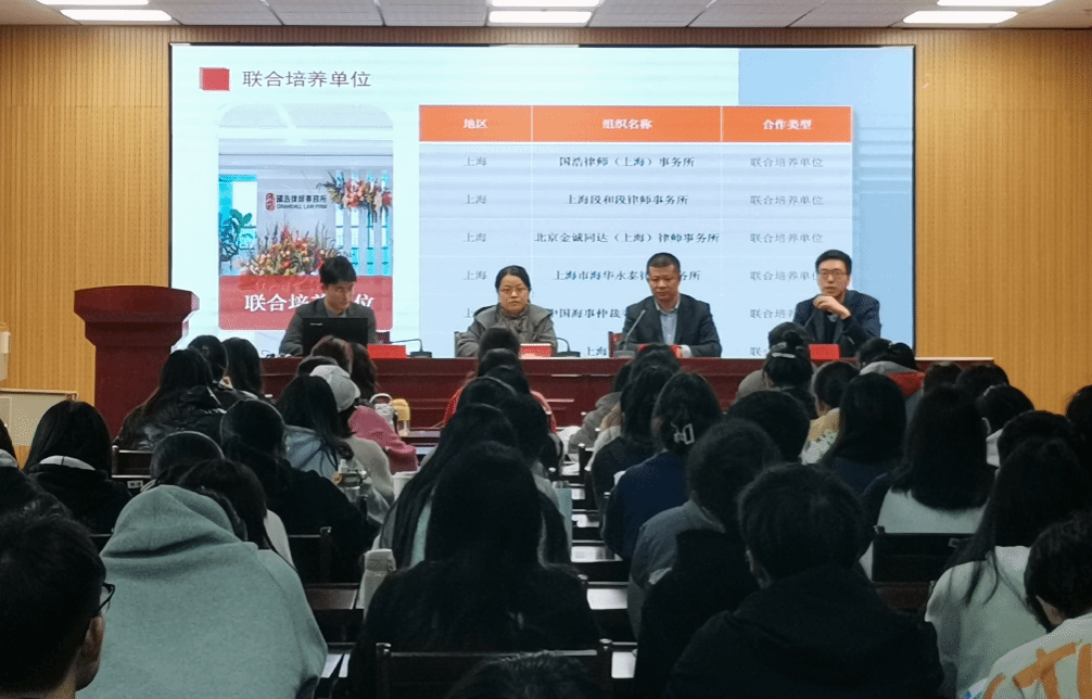 在招生宣讲会上,周楷详细介绍了上海政法学院国际法学院的发展历程、师资力量、专业建设、研究生培养方案,并就教师及研究生的科研成果、研究生就业情况等方面进行了详细讲解。