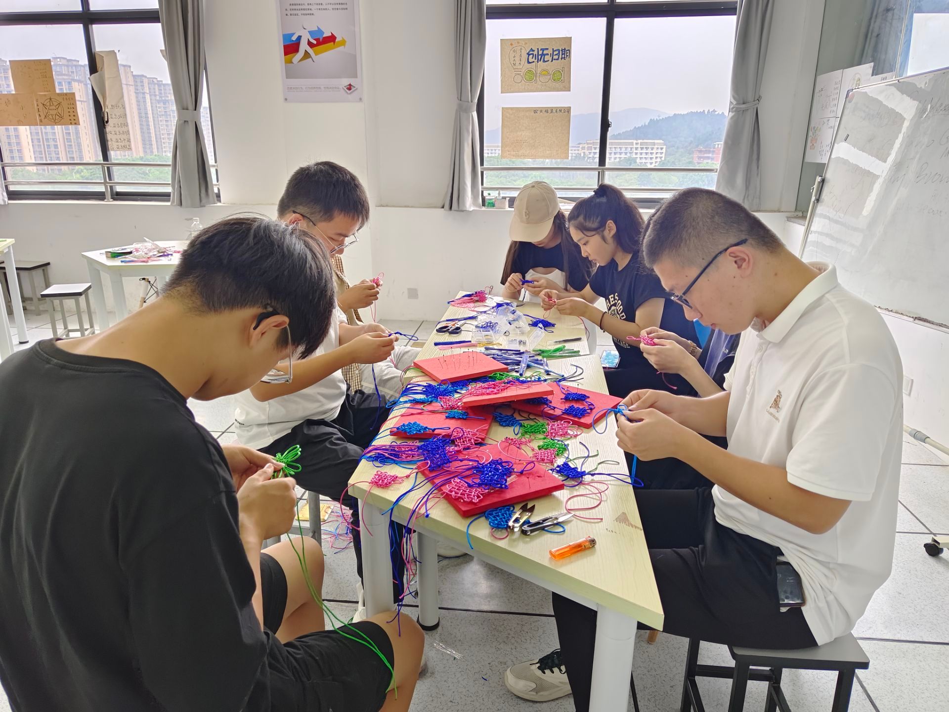 在经过数次练习后,一个个富有生命力的中国结从应用心理学专业2022级(2)班曾建霞的手中“诞生”,完成中国结的制作后,她与朋友们纷纷拍照留念。她说:“编织中国结需要足够的耐心,线与针之间的缠绕十分考验我们的专注力。”曾建霞表示,中国结象征着吉祥如意,团圆美满,希望老师们在今后的生活与工作中万事顺遂、幸福欢乐。