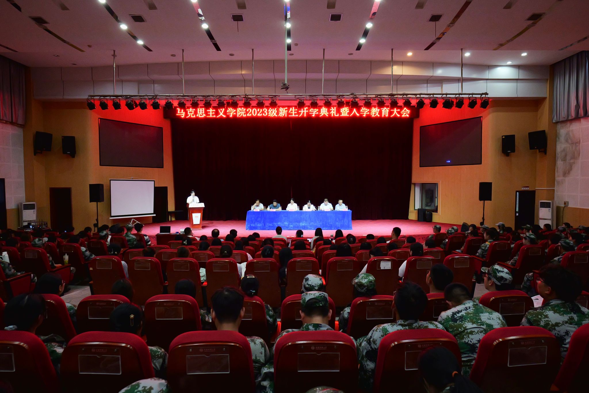 9月6日,马克思主义学院在图书馆东报告厅举办2023级新生开学典礼暨入学教育大会,学院党委书记陈秀、院长严仍昱、党委副书记邹斌、副院长张俊生、余江舟,教师代表、团委负责人、2023级新生辅导员及207名新生共同参会。典礼由邹斌主持。