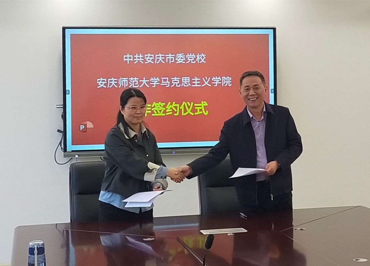 马克思主义学院院长严仍昱、安庆市委党校副校长程鹏代表单位签订合作协议。在签约仪式上,双方围绕合作内容,结合各自优势,就制定合作项目的具体实施方案进行了深入交流。双方均表示,将切实推动双方合作取得更多成果,实现共同发展。(撰稿、摄影:陈道发 编辑:江伟 审核:严仍昱 赵丽丽)
