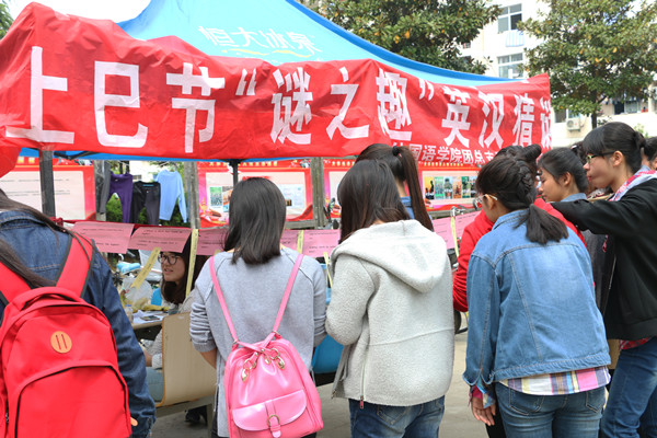 据悉,此次活动除了猜字谜外,还有“三月三,写三行”活动,每个选手拍当季盛开的花儿照片,并且用三句英文来描述,这个活动将一直持续到三月二十号。(文/学生记者 肖奇琳 秦天宝 图/学生记者 王宵璐)