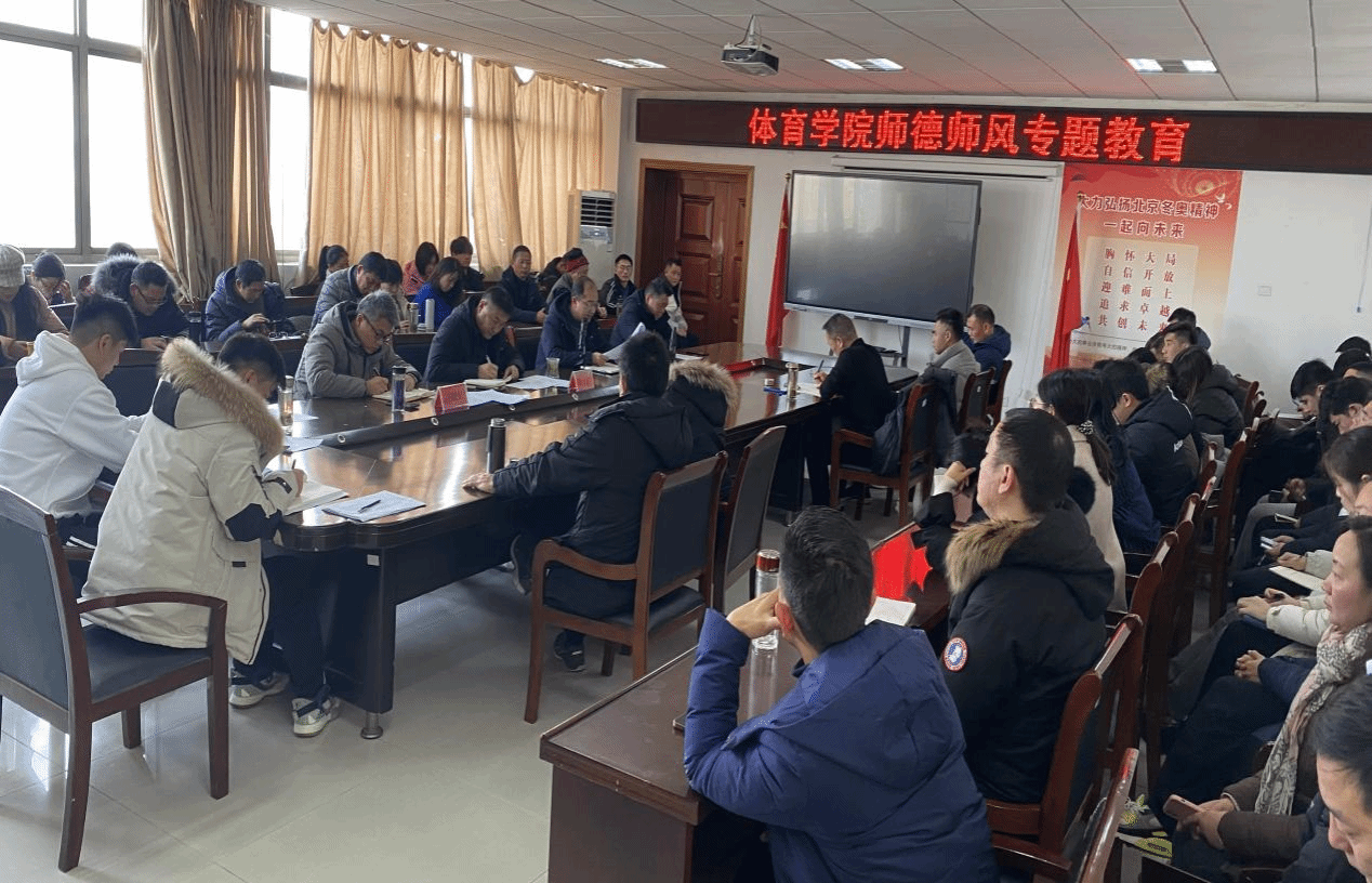 12月20日,体育学院党委在体育馆三楼会议室围绕师德师风建设为主题开展专题教育学习会,会议由院长周多奇主持,全体教职工参加会议。
