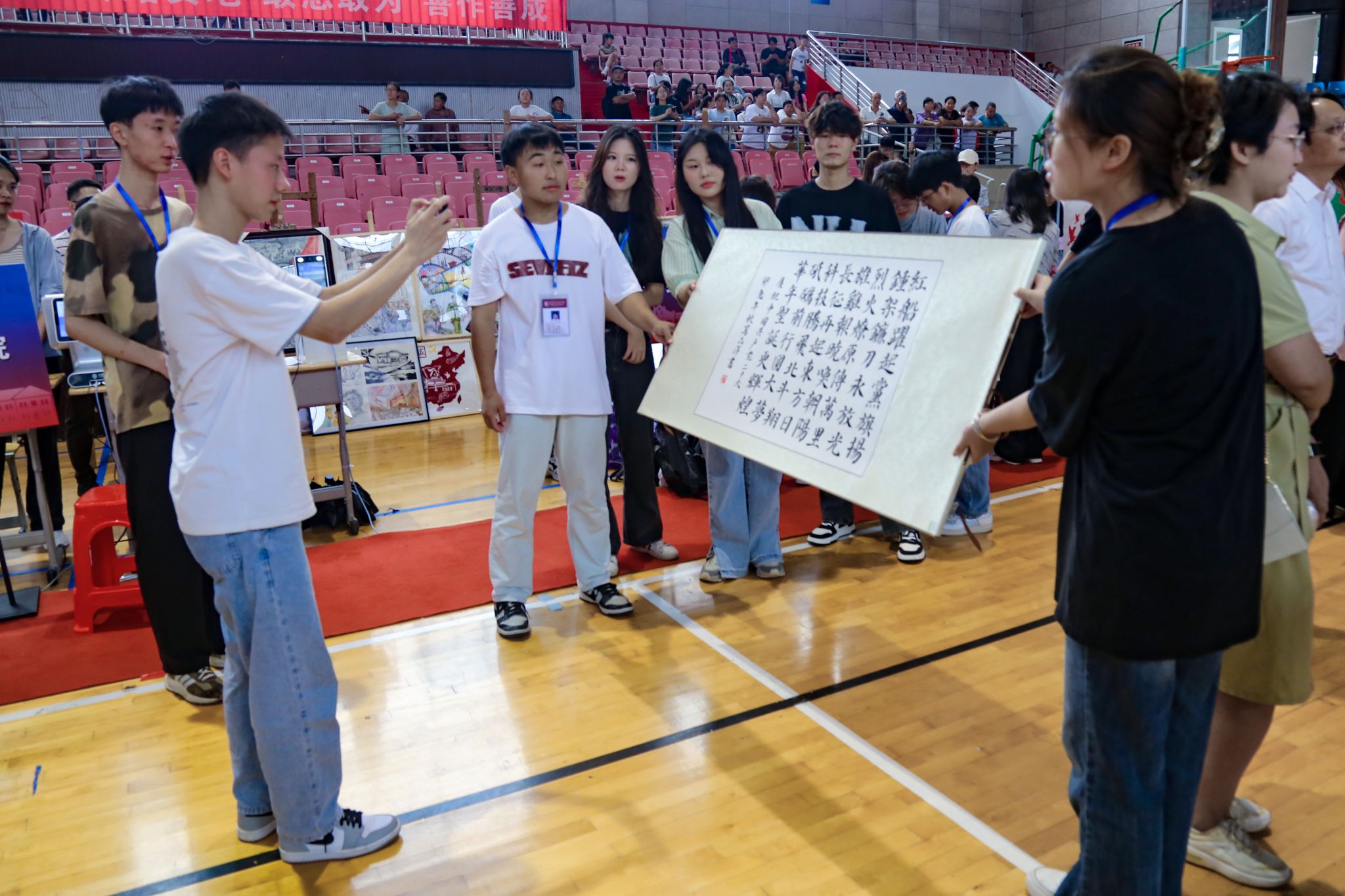 8月30日,随着美术学院的新生们逐一报到,一场特殊的新生作品展也随之展开。每一位前来报到的新生手中,都拿着一幅以“翰墨抒情怀,青春颂百年”为主题创作的绘画作品,风格迥异、形式多样的作品在报到现场形成了一道靓丽的风景线,吸引了众多学生家长驻足观看。