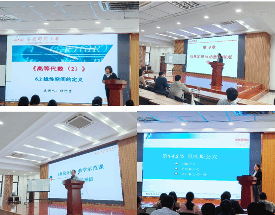 4月10日,数理学院在I楼401报告厅举行公开示范课,分别邀请舒阿秀副教授、江燕燕副教授、陈素根教授、叶仁玉教授进行示范授课。数理学院相关领导、全体专任教师参与观摩学习。副院长易明芳主持本次活动。