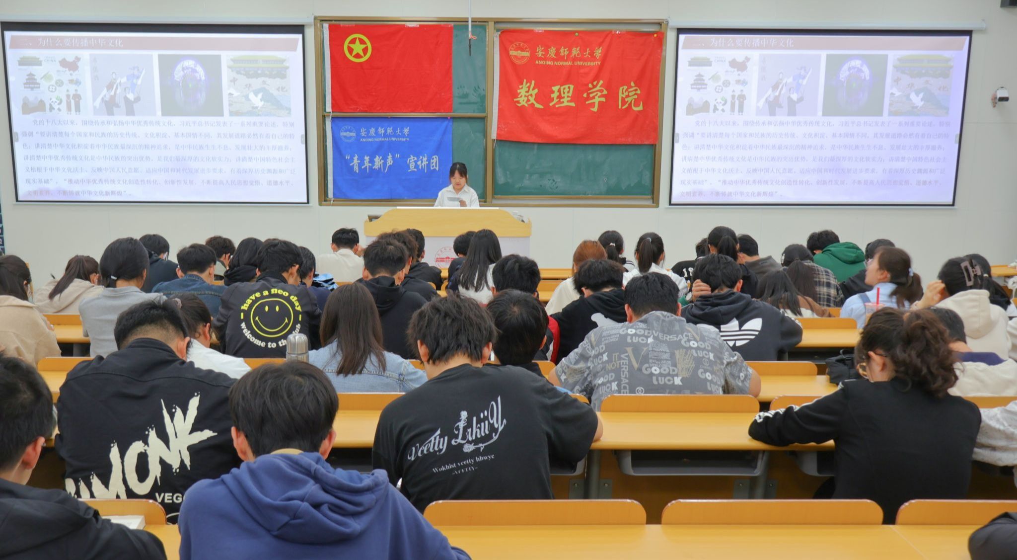 4月17日,数理学院举办“增进中华文明传播力影响力,讲好中国故事”主题宣讲会。学院邀请校“青年新声”宣讲团成员在文溯楼108开展主题宣讲。数理学院入团积极分子、2023级各班团支书、青马班成员以及生命科学学院入团积极分子共百余人参与宣讲会。