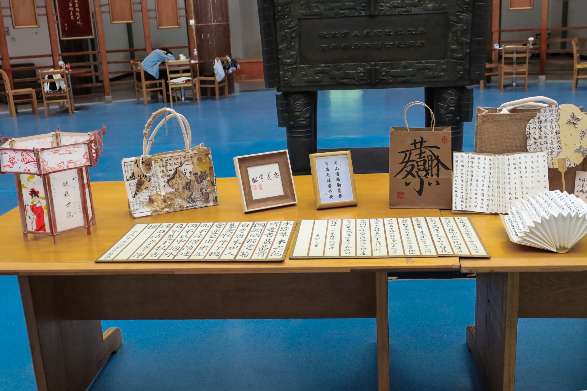 “读书破万卷,下笔如有神。”图书馆一楼圆弧大厅的作品展旁,来来往往的学生被这些书法、剪纸作品吸引,驻足观赏。4月21日,逸夫图书馆与美术学院携手举办了以“世界读书日”为主题的手工作品展。书法、剪纸、绘画、手提袋、灯笼等作品琳琅满目,展现了艺术创作的无限可能。这些作品不仅是对阅读的致敬,更是对文化的传承和发扬。