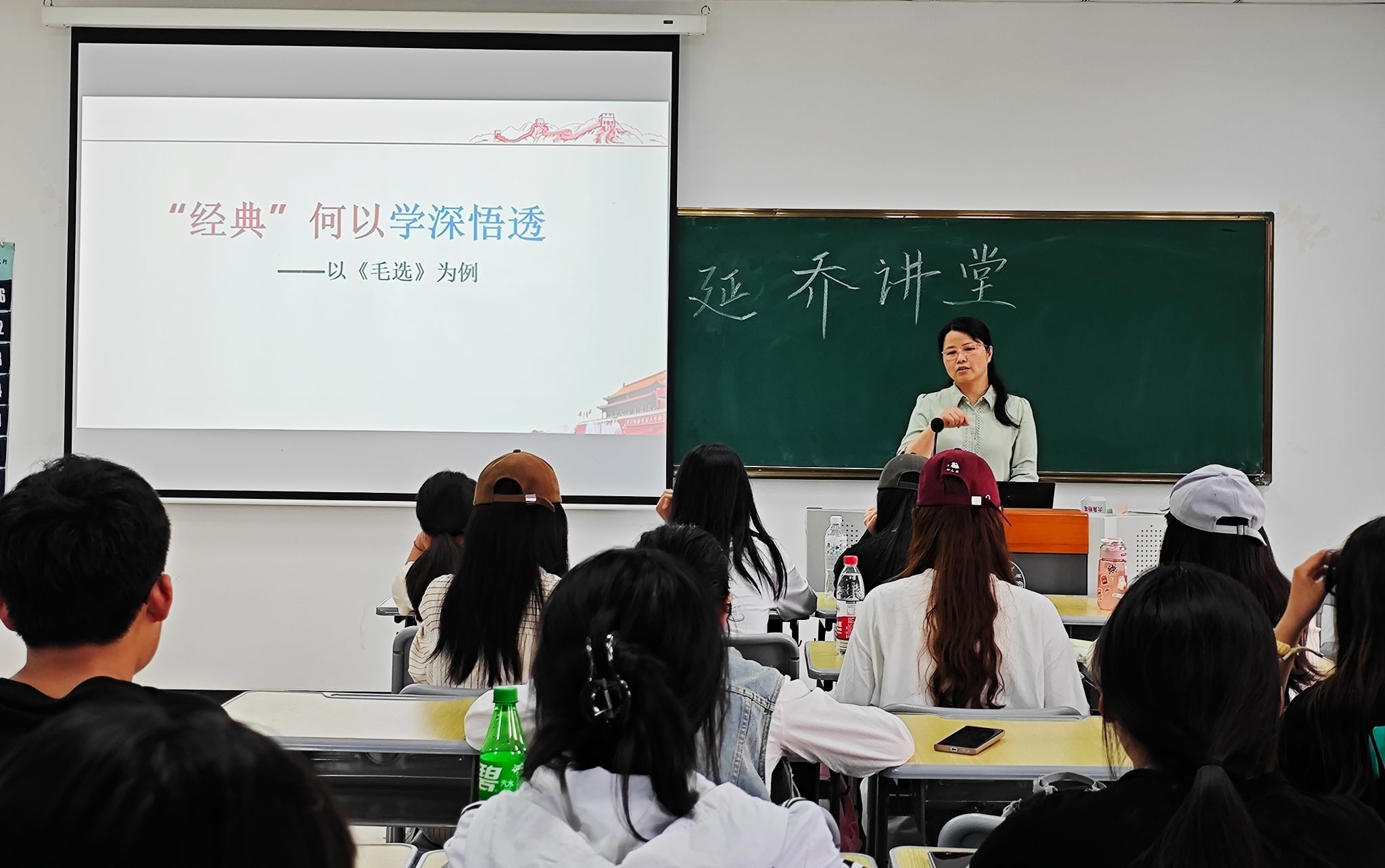 汪金玉博士以“‘经典’何以学深悟透—以《毛泽东选集》为例”为题,从阅读的准备、阅读的方法以及阅读的步骤向同学们介绍研读马克思主义经典著作的方式方法,以《实践论》《矛盾论》为例详细进行讲解,并就学生研读的相关问题进行答疑解惑、充分交流。