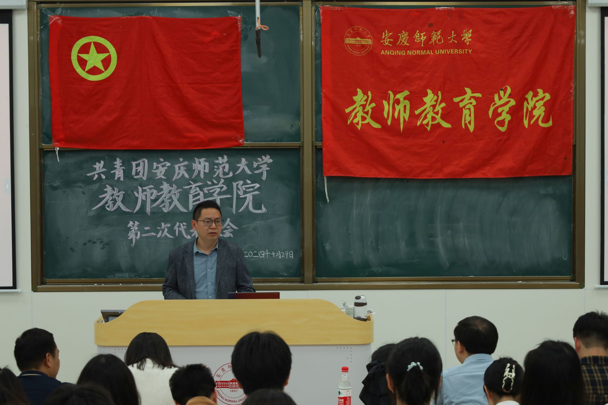 4月24日,共青团beat365平台唯一官网教师教育学院第二次代表大会在文渊楼108教室召开。学院党委书记何孔蛟,党委委员、副院长诸园、王皓宇出席会议。学院全体专兼职辅导员及学院团代会120名代表参会。