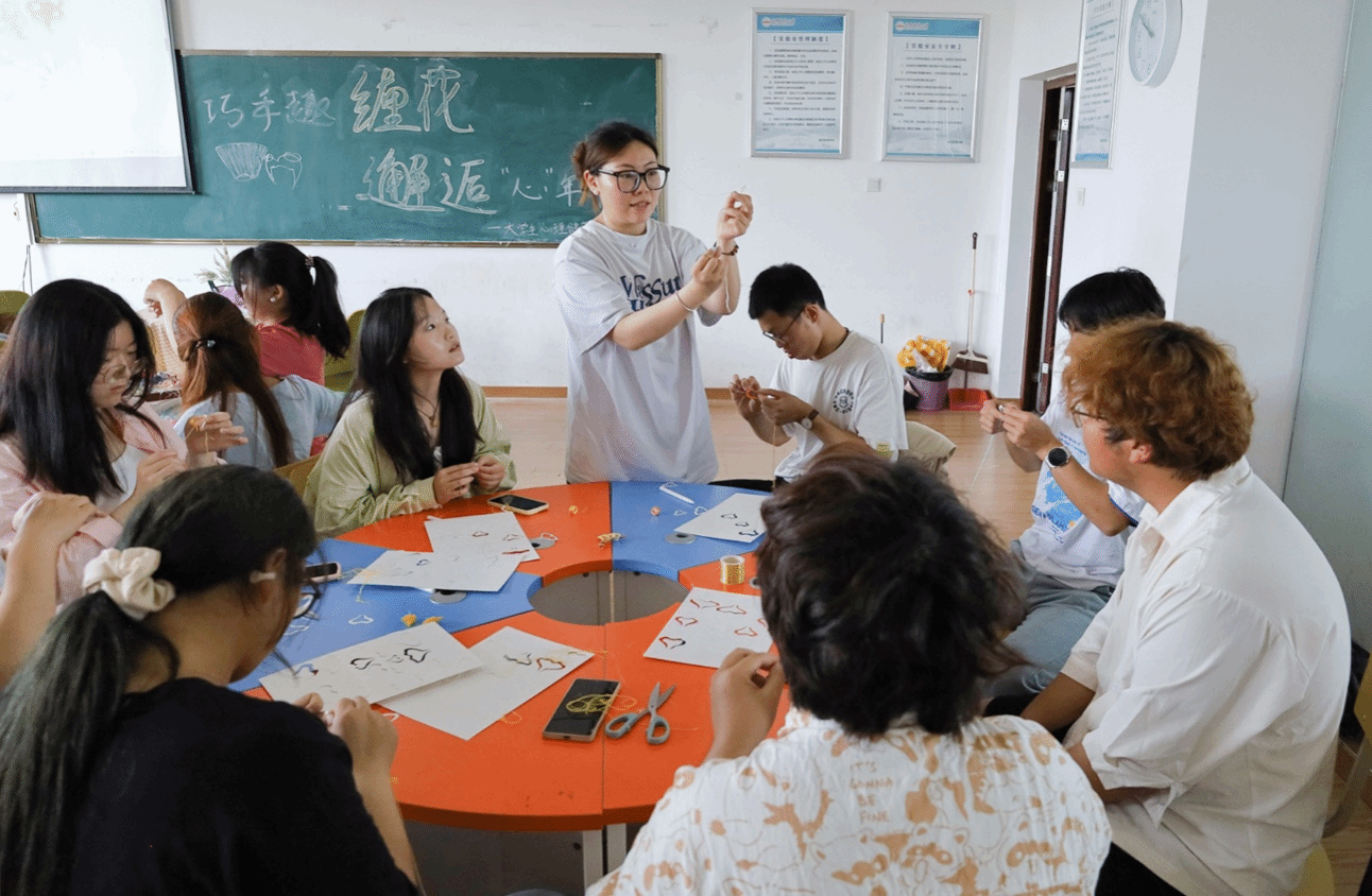 4月27日,大学生“四成”服务大厅心理服务部联合“栩栩如生”非遗缠花设计工作室举办“巧手趣缠花”活动。30名学生在制作缠花的过程中,与“心”相遇,“邂逅”非遗。