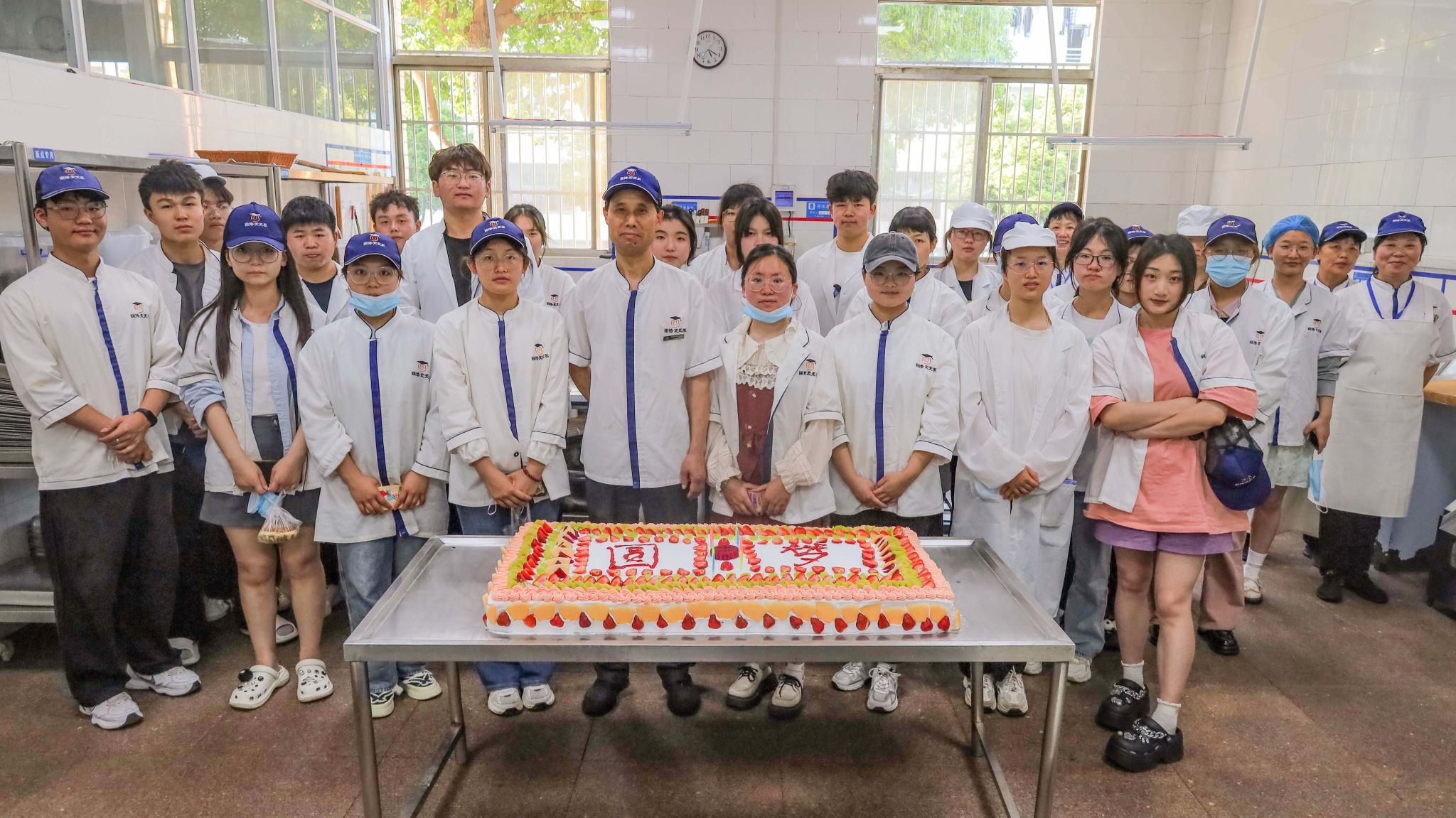 从烘烤蛋糕坯、打发奶油,到分切水果、裱花装饰,学生们与面点师傅分工合作,共同制作此次烘焙节的“重头戏”——长1.2米,宽0.7米的“圆梦”蛋糕。将按压成校徽形状的火龙果摆在蛋糕中间位置,随着“圆梦”二字的写成,一个“真材实料”的蛋糕便出现在学子面前。“我将这个蛋糕命名为‘圆梦’,希望所有学子都能在师大圆梦。”徐前直言,希望以后他们回忆起这次体验时仍觉得美好。“正值毕业季,我也想将‘圆梦’这份美好祝福送给各位准毕业生。”他说。
