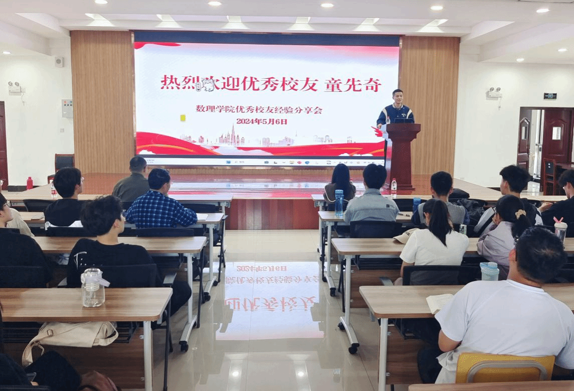 5月6日,数理学院在I401报告厅举办校友经验分享报告会。学院邀请校友、北京师范大学博士生童先奇作经验交流分享。学院部分教师、2023级稼先班学生和部分学生代表参会。会议由学院党委副书记彭芳珍主持。
