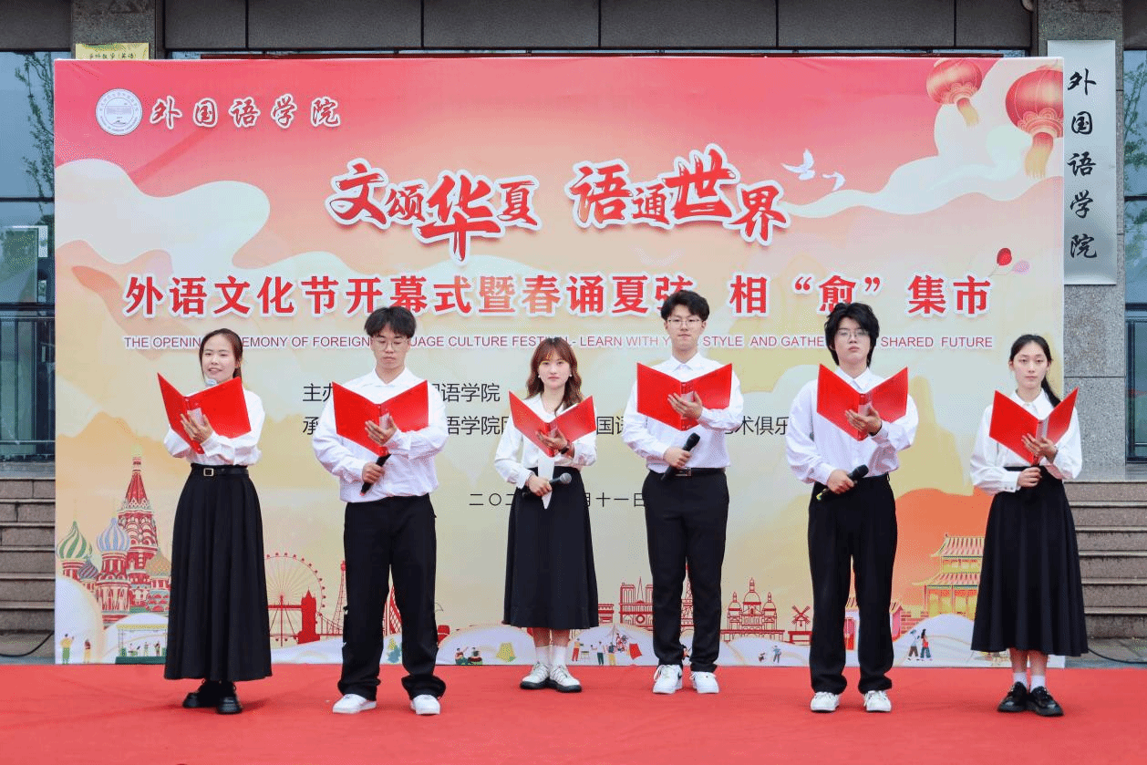 5月11日,外国语学院于学院北门广场举行2024年外语文化节开幕式暨春诵夏弦 相“愈”集市活动。学院党委书记李亦亮、院长王先荣等全体党政领导班子成员、部分教师代表及外籍教师出席开幕式,并与300余名学生共赴音乐与文化交织的多彩市集。