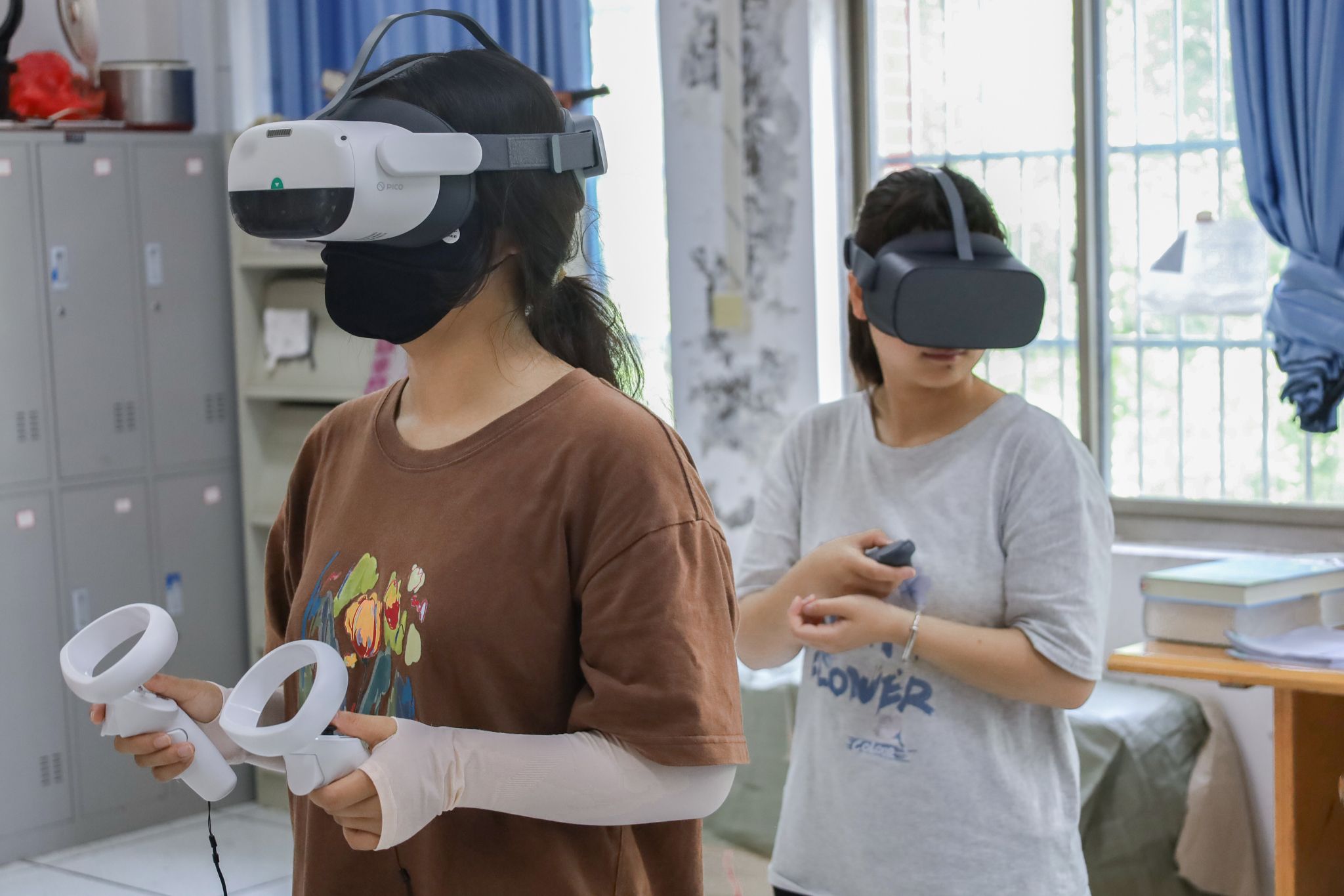 “哇,好神奇!”“我看到了另外一个世界!”“好像真的可以触摸到!”“VR心旅探”活动体验中,参与学生头戴VR眼镜,沉浸在自我的世界中。“戴上眼镜的那一刻,一颗蔚蓝的星球就在我的面前,十分逼真。”新闻传播学类专业2023(7)班的黄晓洁感叹,通过VR设备,她可以选择很多不同的场景,每一次选择都是新奇的体验。“在VR的世界中,我好像真正与自己的内心来了一次面对面的交流。”