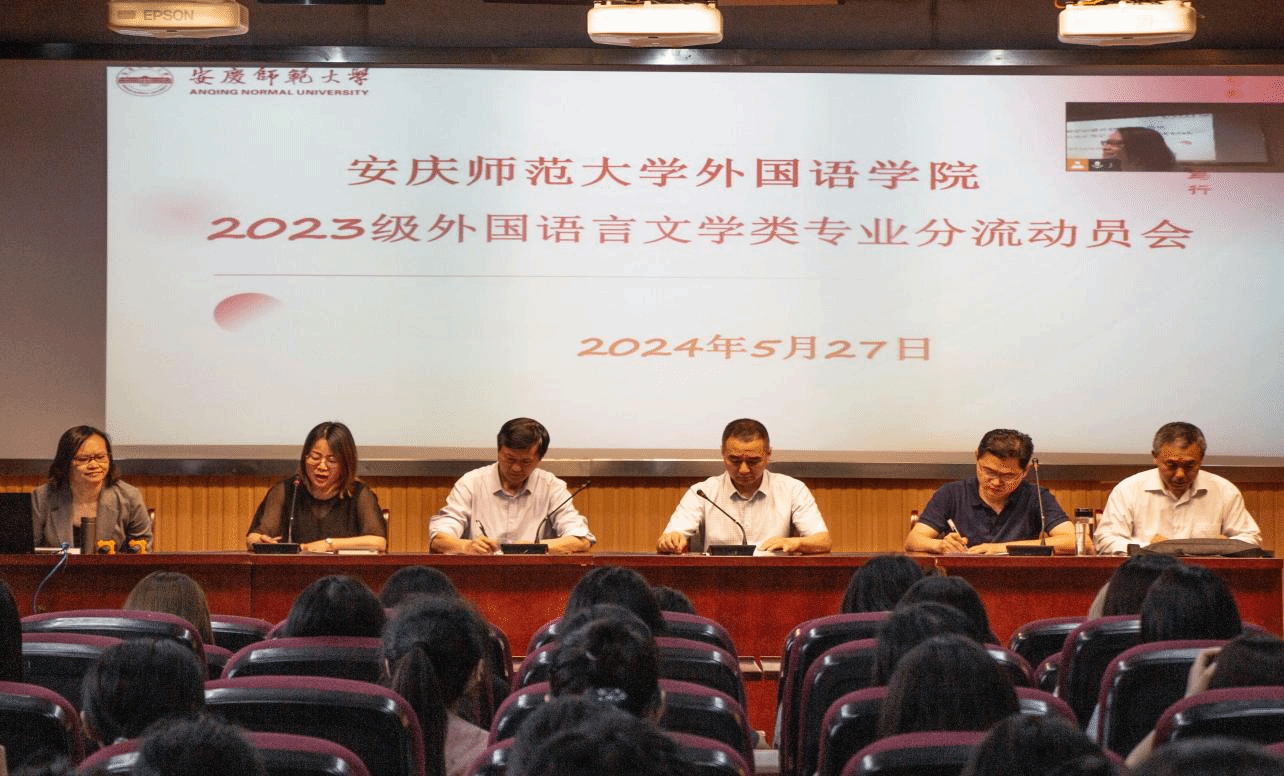 5月27日,外国语学院于E50召开2023级外国语言文学类专业分流动员大会,并于E314和E316分会场同步直播。外国语学院院长王先荣,副院长江加宏、瞿宁霞,外国语言文学类专业负责人,23级辅导员代表以及2023级外国语言文学类专业全体学生参加此次会议。大会由瞿宁霞副院长主持。