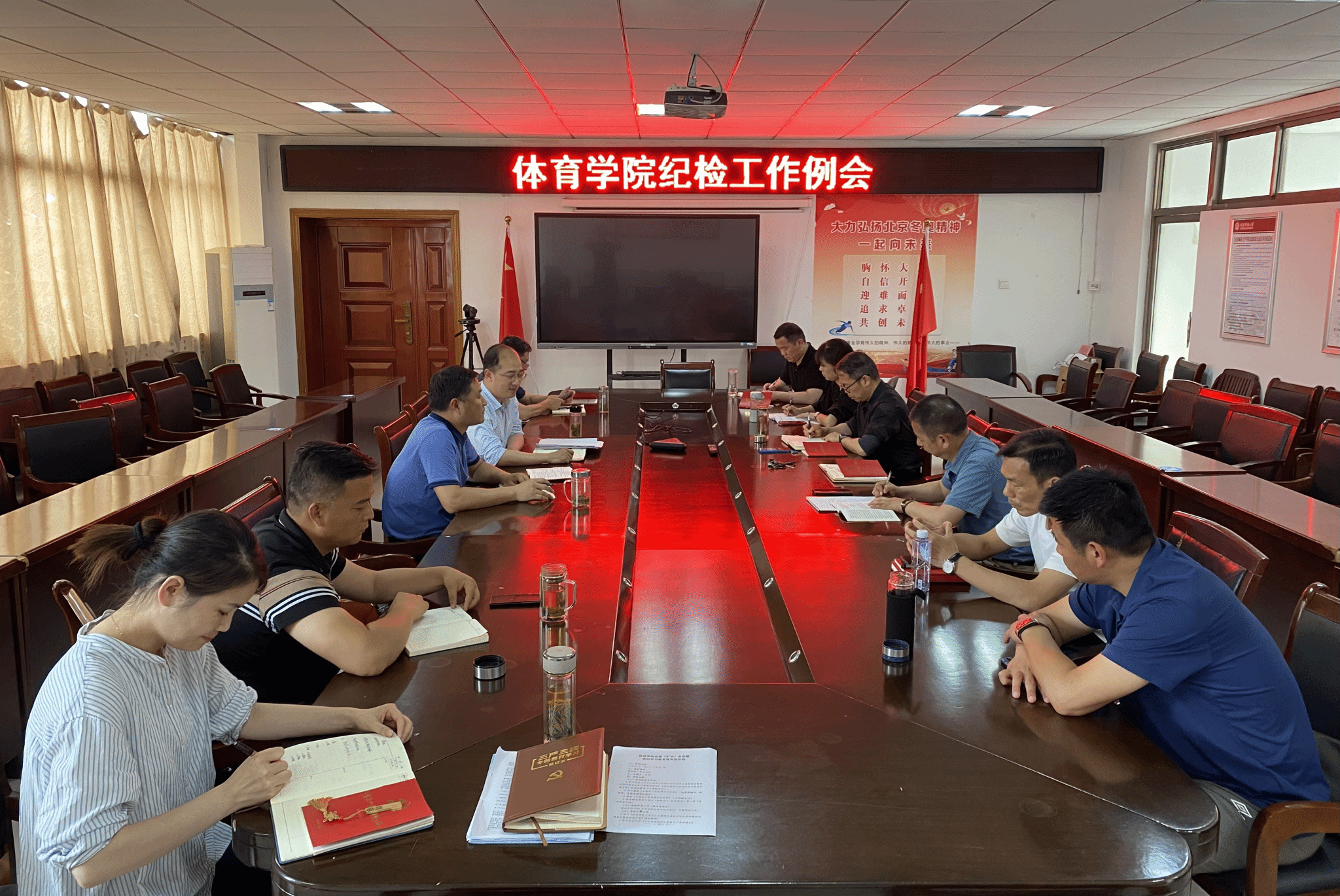 近日,体育学院在学院三楼会议室召开纪检工作例会。会议由学院党委副书记、纪委书记王玮主持,学院党政领导、党委委员、组织员、纪委委员、各党支部书记、教研室主任参加了会议。