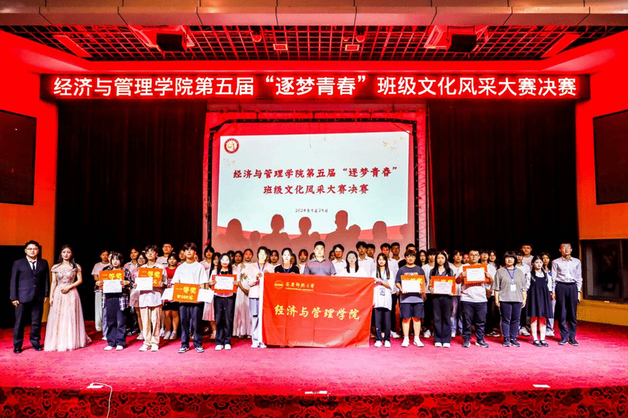 5月25日,经济与管理学院在图书馆东厅举办第五届“逐梦青春”班级文化风采大赛决赛。经济与管理学院团委负责人、部分辅导员老师和学生干部担任评委。近300名同学到场观看比赛并为参赛班级加油。