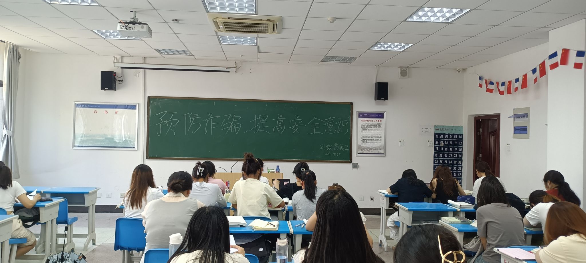 外国语学院各班级通过知识科普、案例分析等形式开展以“预防诈骗,提高安全意识”为主题的主题班会,组织学生集中观看反诈骗安全教育片《电信诈骗大揭秘》,向班级学生普及了征信、金融知识,列举了常见的资助诚信缺失行为,警醒学生远离不良贷、套路贷,谨防电信诈骗,引导学生珍爱信用、理性消费,帮助同学们树立诚信意识和风险意识。