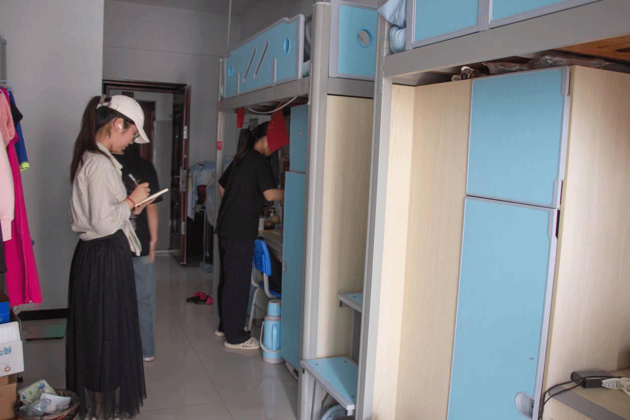 5月22日,外国语学院开展宿舍安全卫生检查工作。卫生检查前,学院对寝室长开展了统一培训,并明确指出了检查的重点和要求。寝室长们依照既定标准,仔细检查宿舍内可能存在的安全隐患。