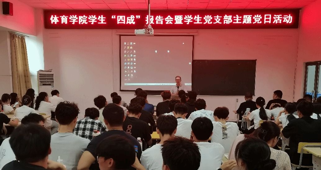 6月5日,体育学院在体育馆多媒体教室开展学生“四成”报告会暨学生党支部主题党日活动。体育学院党委副书记王玮出席会议,学院全体辅导员、2024届优秀毕业生代表、第69期入党积极分子、第28期发展对象等学生代表参加本次会议。