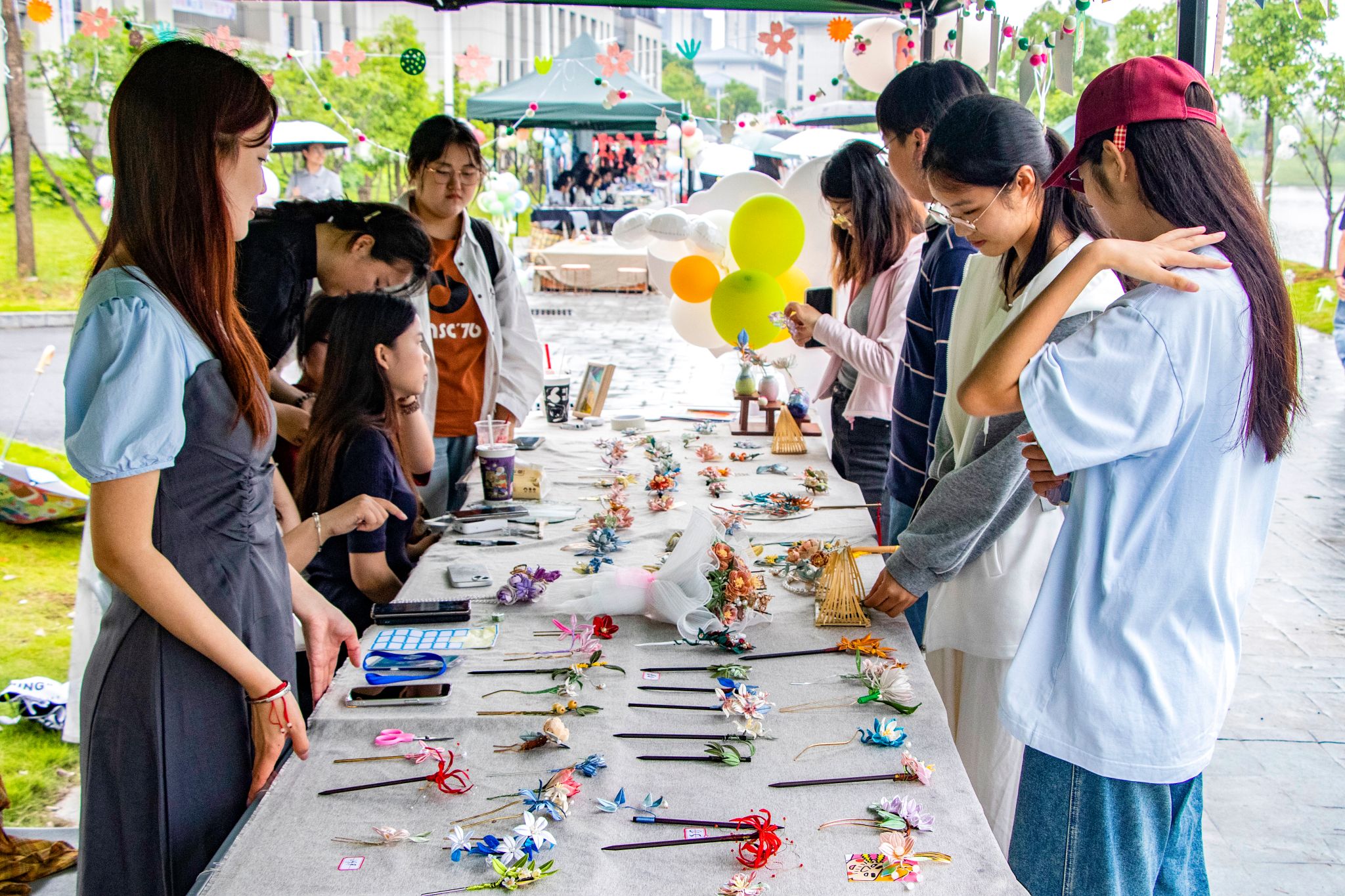 循着热闹的人声来到双龙湖畔,俱乐部展点、沿湖摆放的毕设作品与草坪上转动的风车映入眼帘,谈笑声、音乐声交织成一片。这一幕场景出现在龙山校区,展现着艺术与青春的碰撞融合。6月5日,学校在龙山校区双龙湖畔举办湖畔艺术节,8000余名师生漫步于湖畔拍照“打卡”,开启游园式寻美之旅。